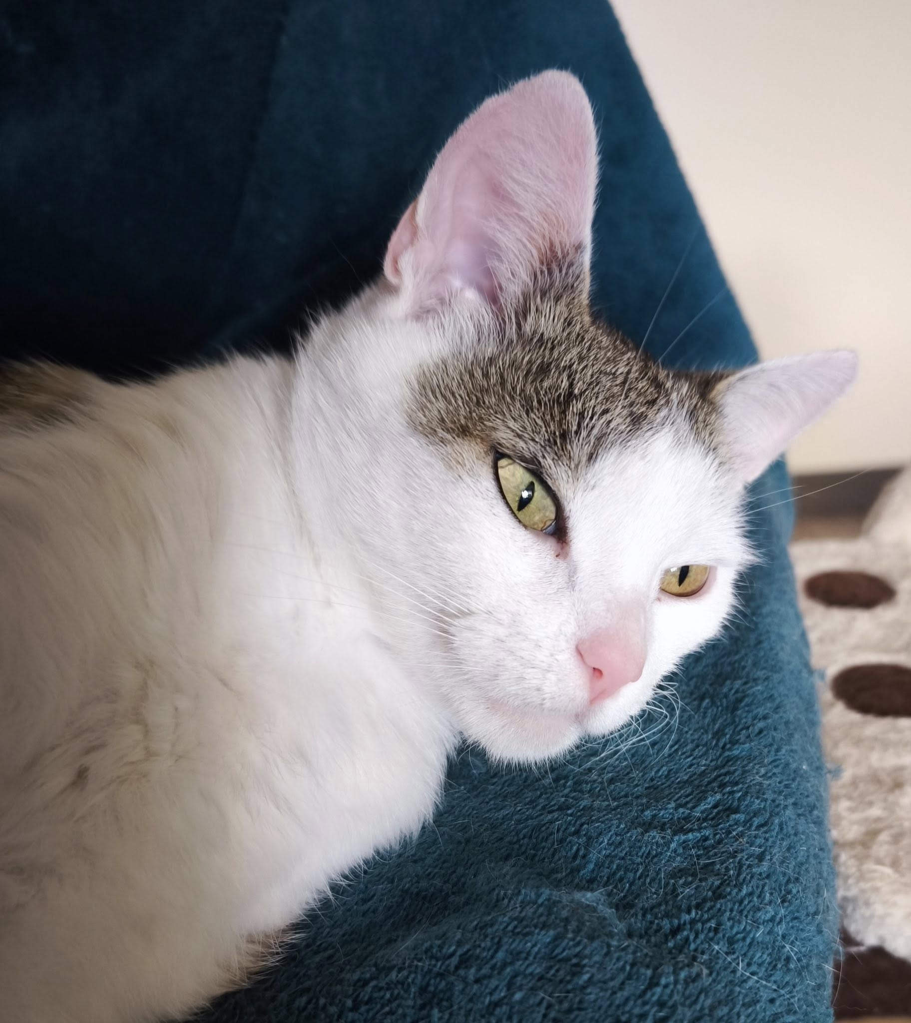 Murka is about 5 years old. She would thrive in a home where she can be the only cat as she is scared to be around other kitties. We expect she would further open up further when she feel safe without other kitties roaming around her.