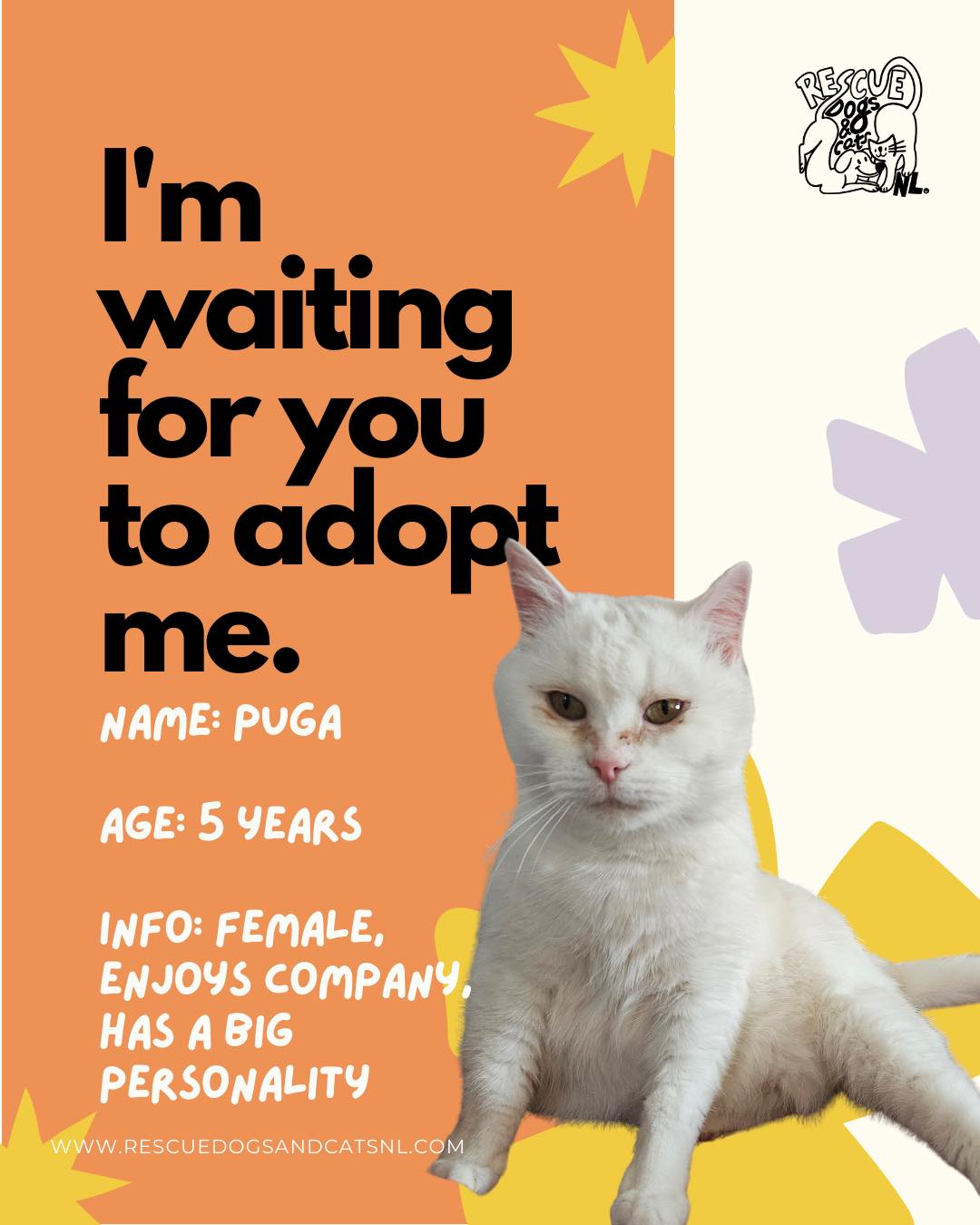 Pūga (meaning Storm) isn’t just a cat with a round belly—she’s a big personality wrapped in a soft, white coat! She loves cuddles and will hop onto a stranger’s lap in seconds, purring away. But make no mistake—when she finds a comfy spot, she’s not giving it up easily! 😼