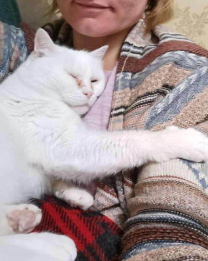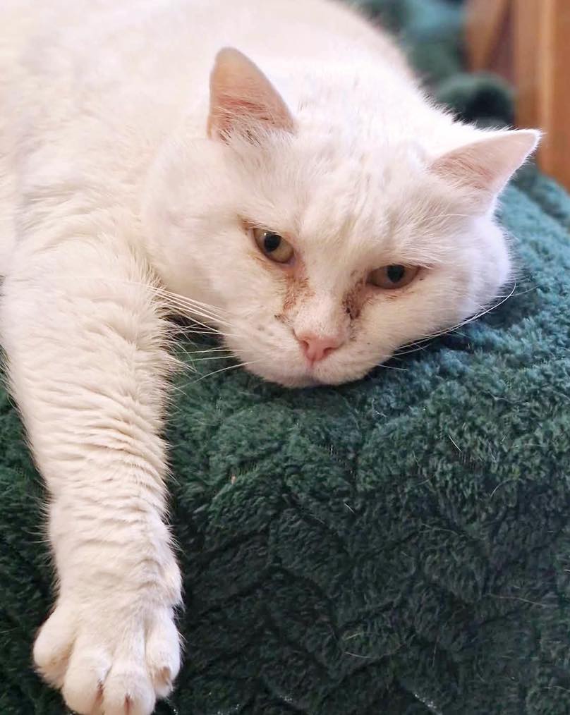 🐾 Meet Pūga – The White Cat Looking for a Home! 🐾