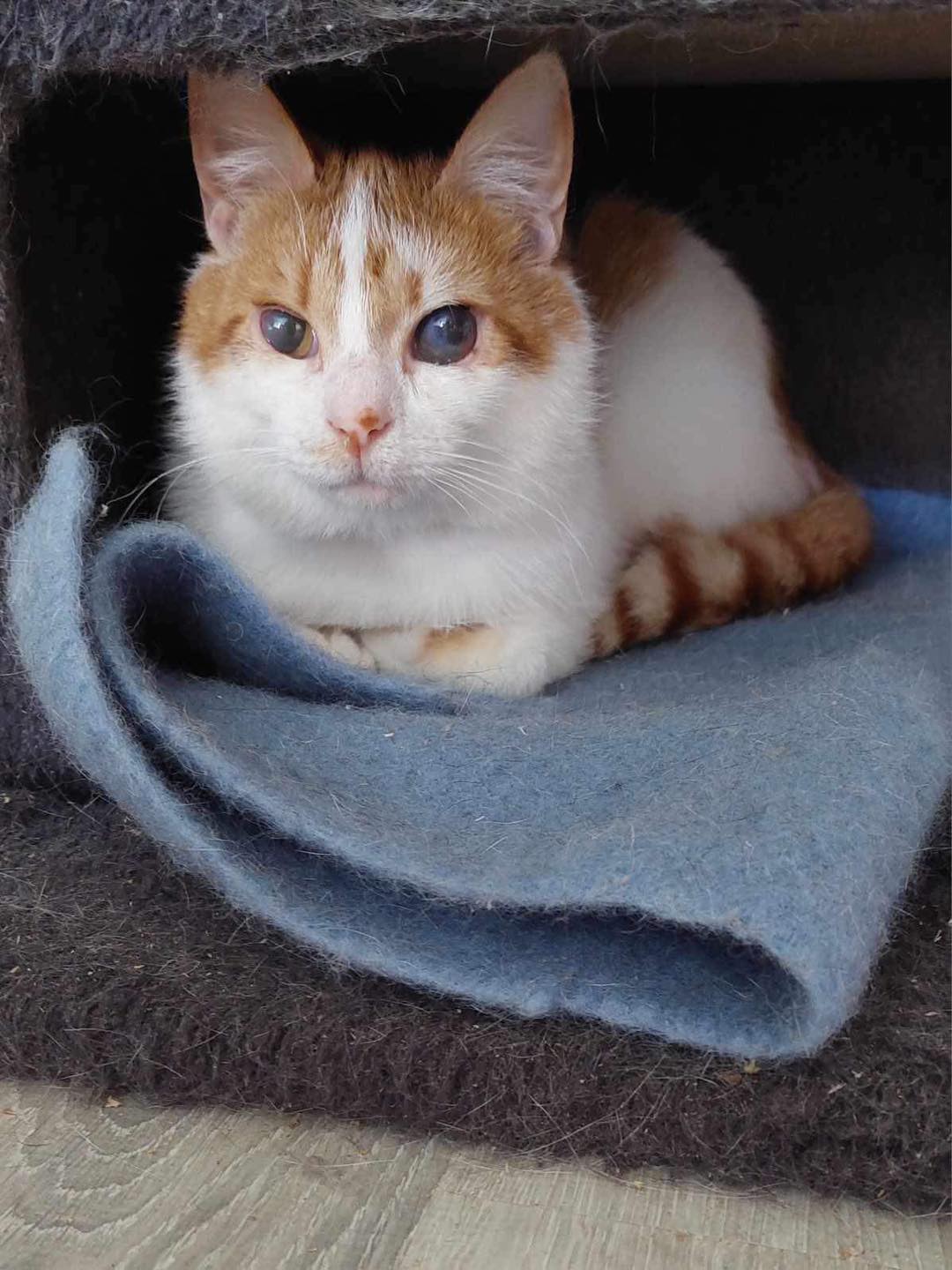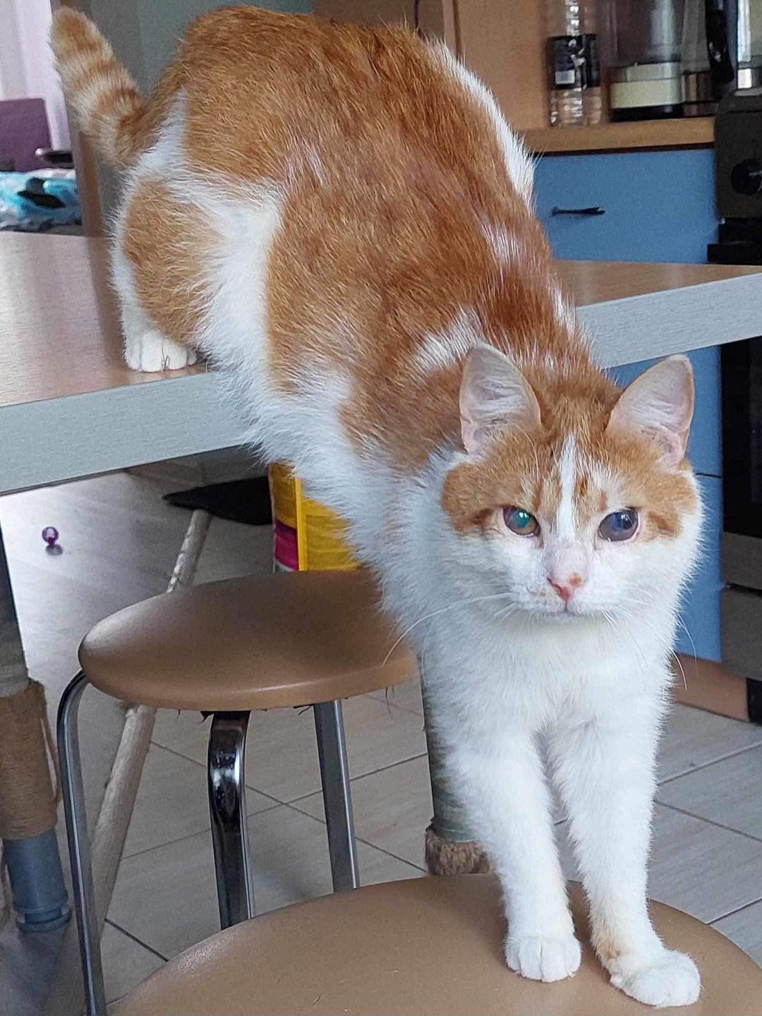 This boy is 3 years old. He’s gentle, playful, gets along with other cats very well, lets humans pet him, only that he doesn’t like to be held yet.