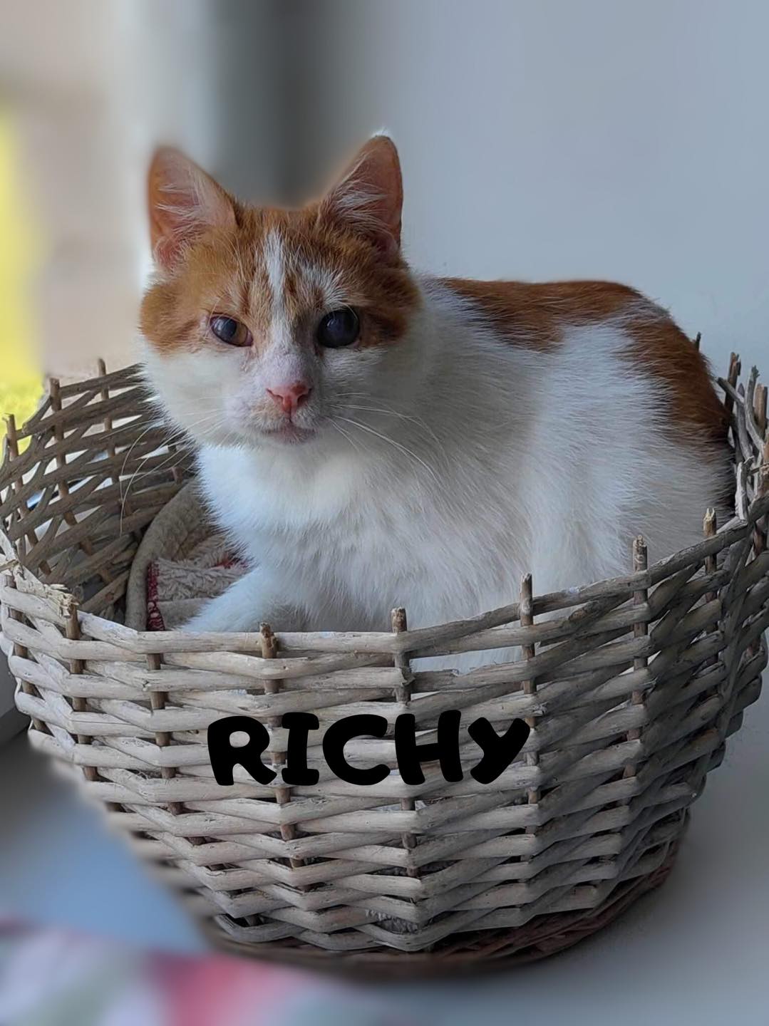 Richy was found and taken from the place outside where he was living with another 30 cats. As you can imagine the cats were not being properly taken care of. He was probably a house cat before but we can’t tell for sure, but we do know that now he is learning to live indoors again and be loved and pampered. He just needs a family to be happy and make them happy too, like a little ray of sunshine!