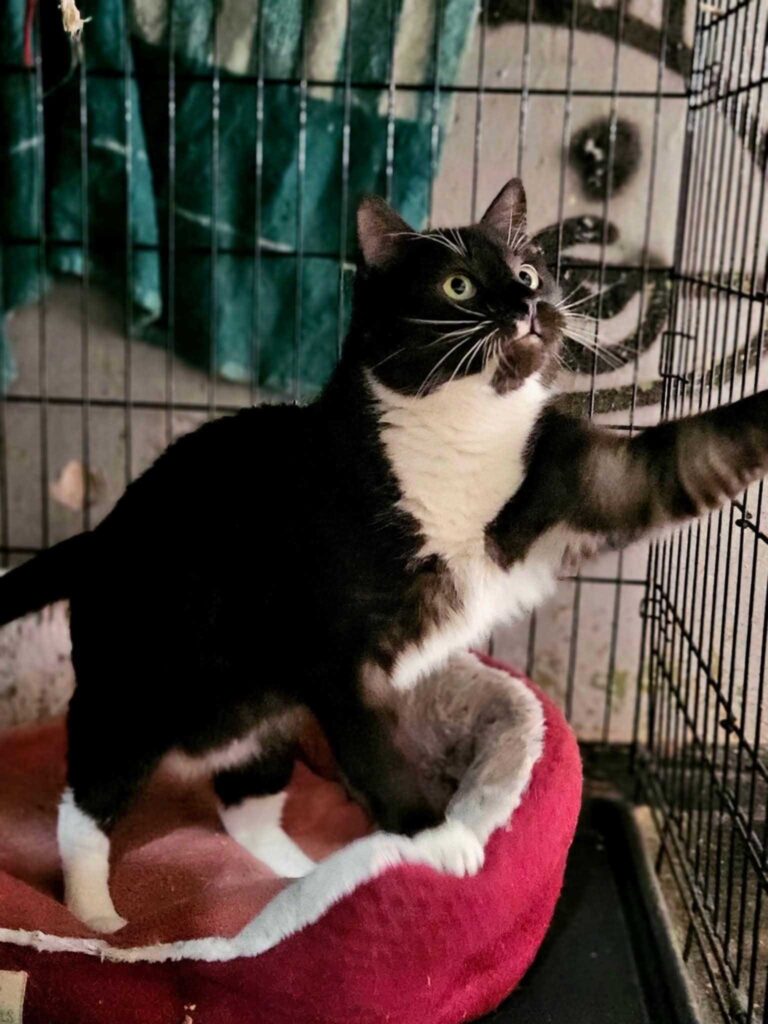 This is Spartacus – a black and white giant with a huge, loving heart who is looking, waiting, and hoping for a forever home! 🙏🏻 Despite his age (he’s about 5–6 years old), Spartacus is a playful kitty 🧶 When he runs, you’ll certainly know a friendly giant is coming – you can hear him a mile away! 🤣 And his fur — is it really black? When you stroke it, it looks like expensive, shimmering grey velvet.
