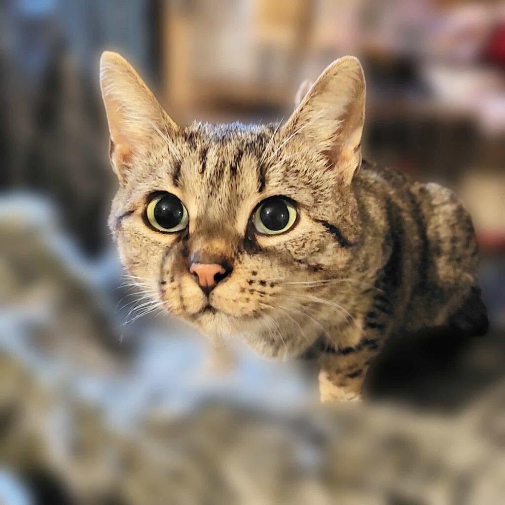 Marisa is a young kitty with a stunning tabby coat and breathtaking eyes. It seems like she has everything a cat could want: plenty of love, endless cuddles, and bowls…