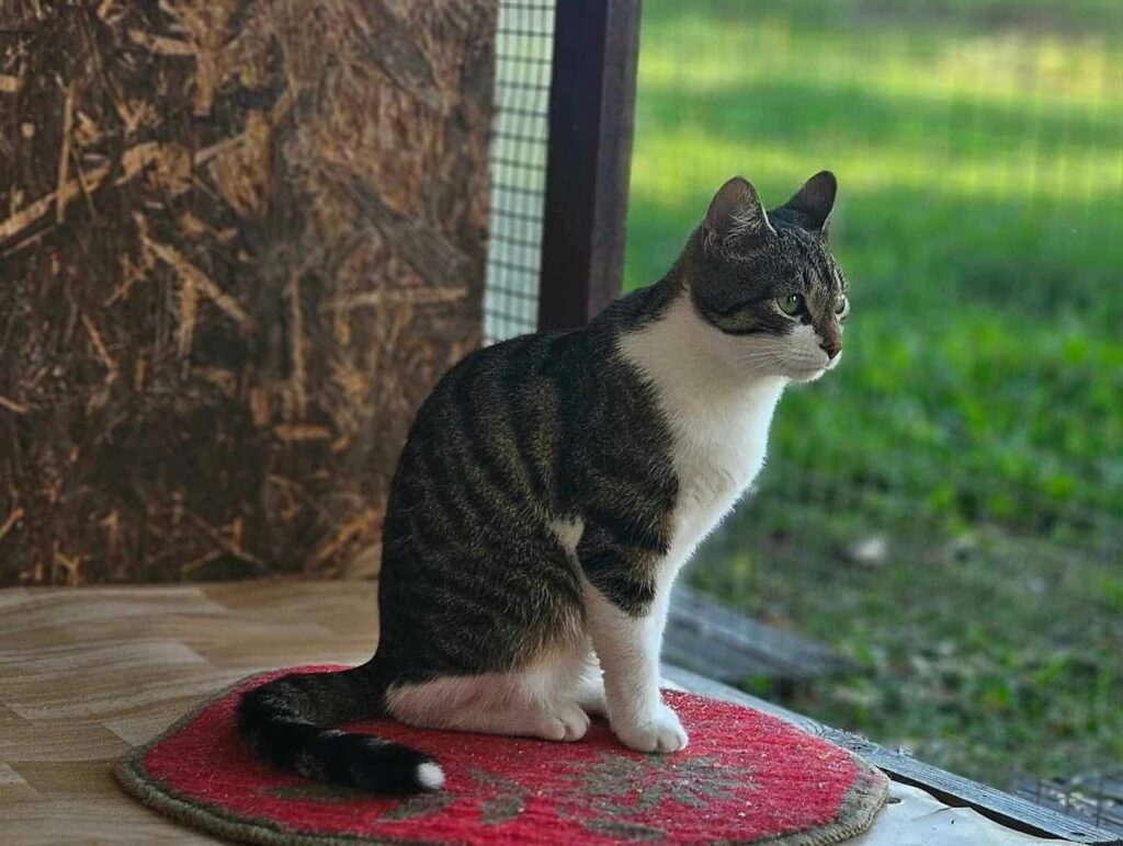 She gets along wonderfully with other girl cats, like Kanell and Brukne. They’re all healthy now and enjoyed the warmth of their little summer houses at the shelter. But with the chilly autumn and winter months starting, they have to move back inside the big shelter building, where the risk of catching a virus in the crowded rooms grows.