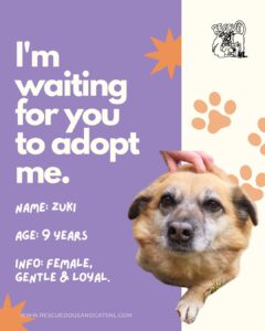 Zuki is a gentle and affectionate dog, and she is 9 years young.